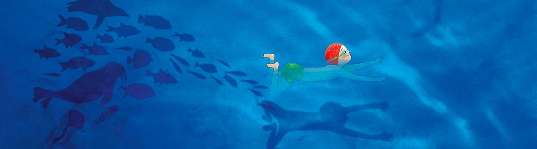 « Au bord du plongeoir, sur le rebord de la baignoire, un petit garçon prend son élan. Un, deux, trois, et plouf ! Commence alors une aventure sous-marine riche en rencontres. Ours blanc, manchots, poissons scintillants, méduses phosphorescentes…».
